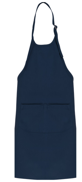 Verstelbaar met metalen sluiting aan de hals. Grote zak aan de voorkant met 2 vakken