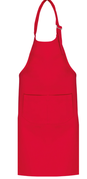 Verstelbaar met metalen sluiting aan de hals. Grote zak aan de voorkant met 2 vakken